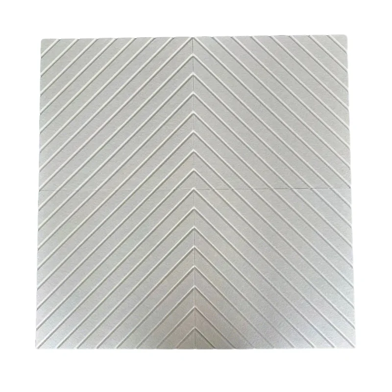 1. Sábháilte agus saor ó riosca: Murab ionann agus na rioscaí greannú féideartha a bhaineann le fiberglass, úsáideann ár bPainéal Fuaimiúil Feilt PET Beige V-chainéil teicneolaíocht nasctha teirmeach, rud a chuireann deireadh leis an ngá atá le greamacháin cheimiceacha. Tá sé saor ó formaildéad, gan bholadh, agus frithsheasmhach in aghaidh múnla agus baictéir, rud a fhágann go bhfuil sé oiriúnach do thithe, do scoileanna agus d'ospidéil - áiteanna a bhfuil riachtanais sábháilteachta arda acu.