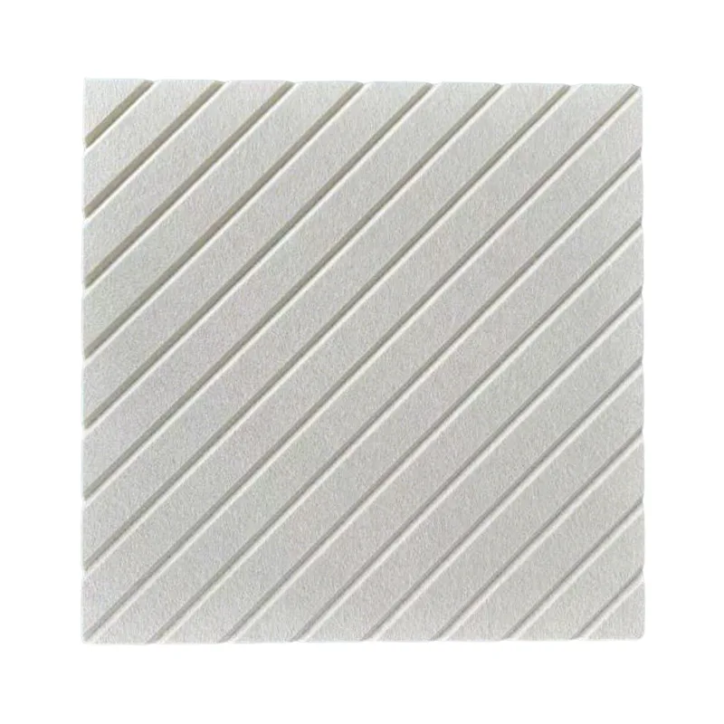 2. Feidhmíocht ionsú fuaime den scoth: Tá comhéifeacht ionsú fuaime de suas le 0.8+ ag ár bpainéal fuaime beige V-gearrtha PET, ag láimhseáil timpeallachtaí torannacha éagsúla go héasca. Tá sé teas-inslithe, caitheamh-resistant, taise-cruthúnas, céimnithe-resistant, cuimilt-resistant, agus cobhsaí a chosc, píosaí ó titim amach agus díobháil. Beidh cuma nua air fiú tar éis roinnt blianta úsáide;