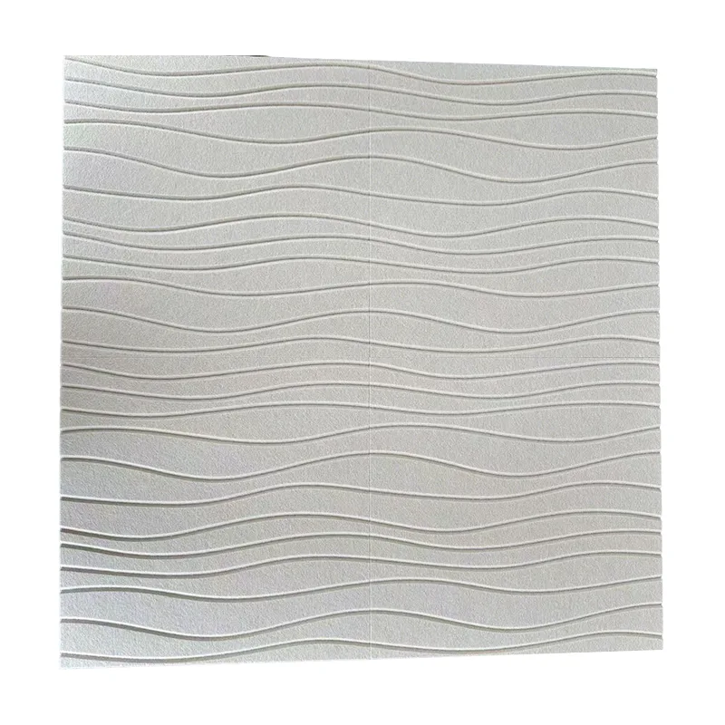 2. Ionsúite Fuaime Ard-Éifeachtúlachta: Is é an próiseas lárnach "punáil snáthaide" ár rún teicniúil. Ceadaíonn an maitrís micrea-pore atá déanta ag na mílte punches snáthaide do Phainéal Fuaime Feilt Beige Wave PET comhéifeacht ionsú fuaime os cionn 0.8 a bhaint amach ag minicíochtaí sonracha (le cuas aeir). Is féidir é a úsáid chun an t-am athfhriotail laistigh a laghdú go suntasach, rud a fhágann go mbeidh an chaint níos soiléire, an ceol níos íonaí, agus an timpeallacht níos ciúine. 3. Neamhdhíobhálach don Chomhshaol: Tá os cionn 50% de shnáithíní poileistear athchúrsáilte ag ár bPainéal Fuaime Beige Wave PET Feilt, agus tá an táirge féin in-athchúrsáilte ag deireadh a shaolré.
